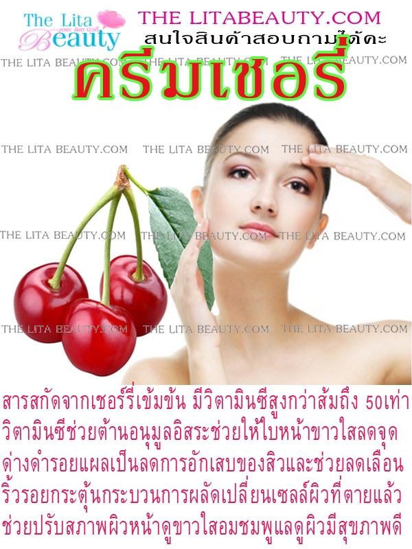 สารสกัดจากเชอร์รี่เข้มข้น ครีมวิตามินซีสูงกว่าส้มถึง 50 เท่าวิตามินซีช่วยต้านอนุมูลอิสระช่วยให้ใบหน้าขาวใส ครีมลดจุดด่างดำ ครีมลดรอยแผลเป็น ครีมลดการอักเสบของสิว และเป็นครีมลดเลือนริ้วรอย กระตุ้นกระบวนการผลัดเปลี่ยนเซลล์ผิวที่ตายแล้วช่วยปรับสภาพผิวหน้าดูขาวใสอมชมพูแลดูผิวมีสุขภาพดี